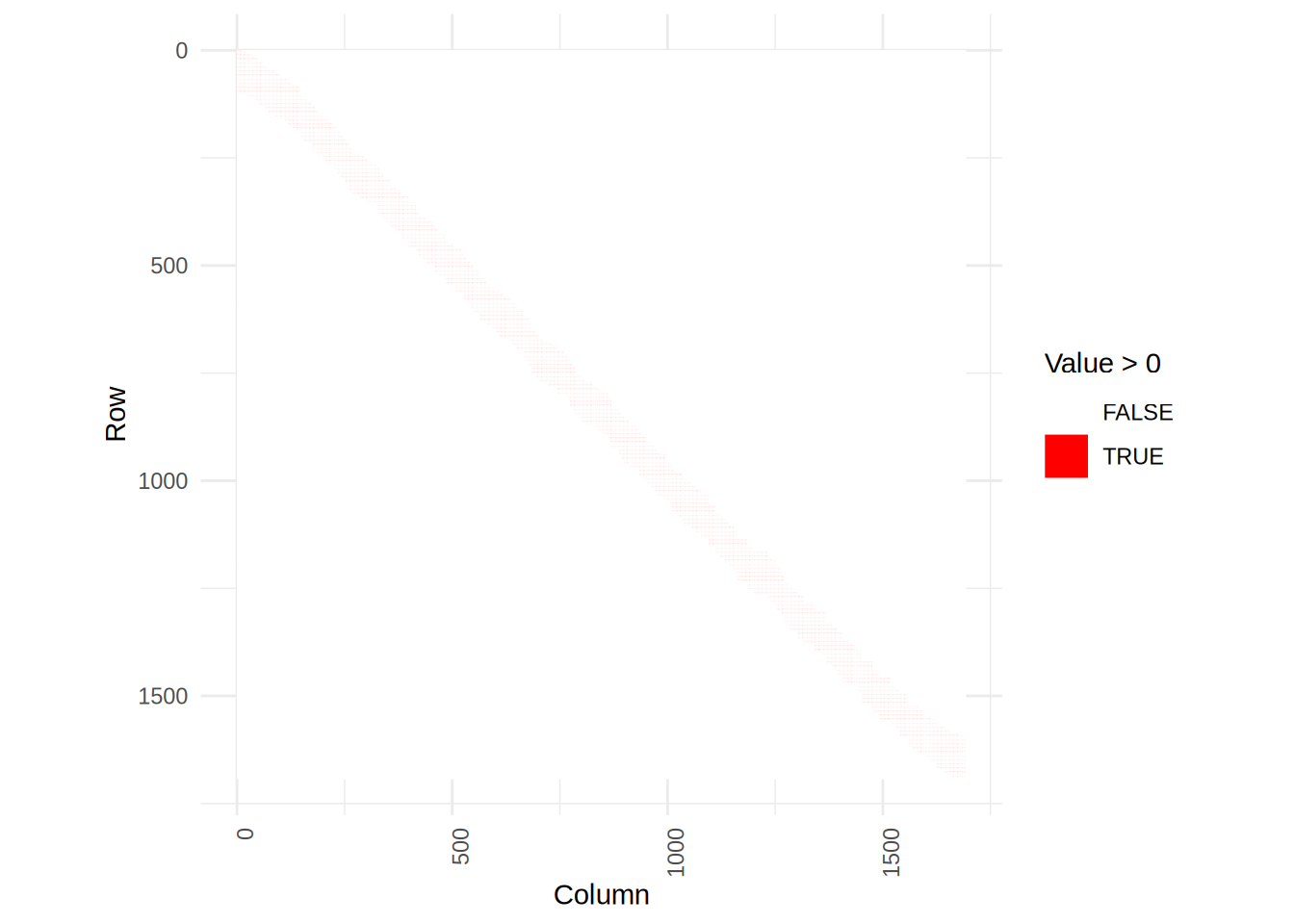 labs(x = "Column", y = "Row", fill = "Value > 0") +