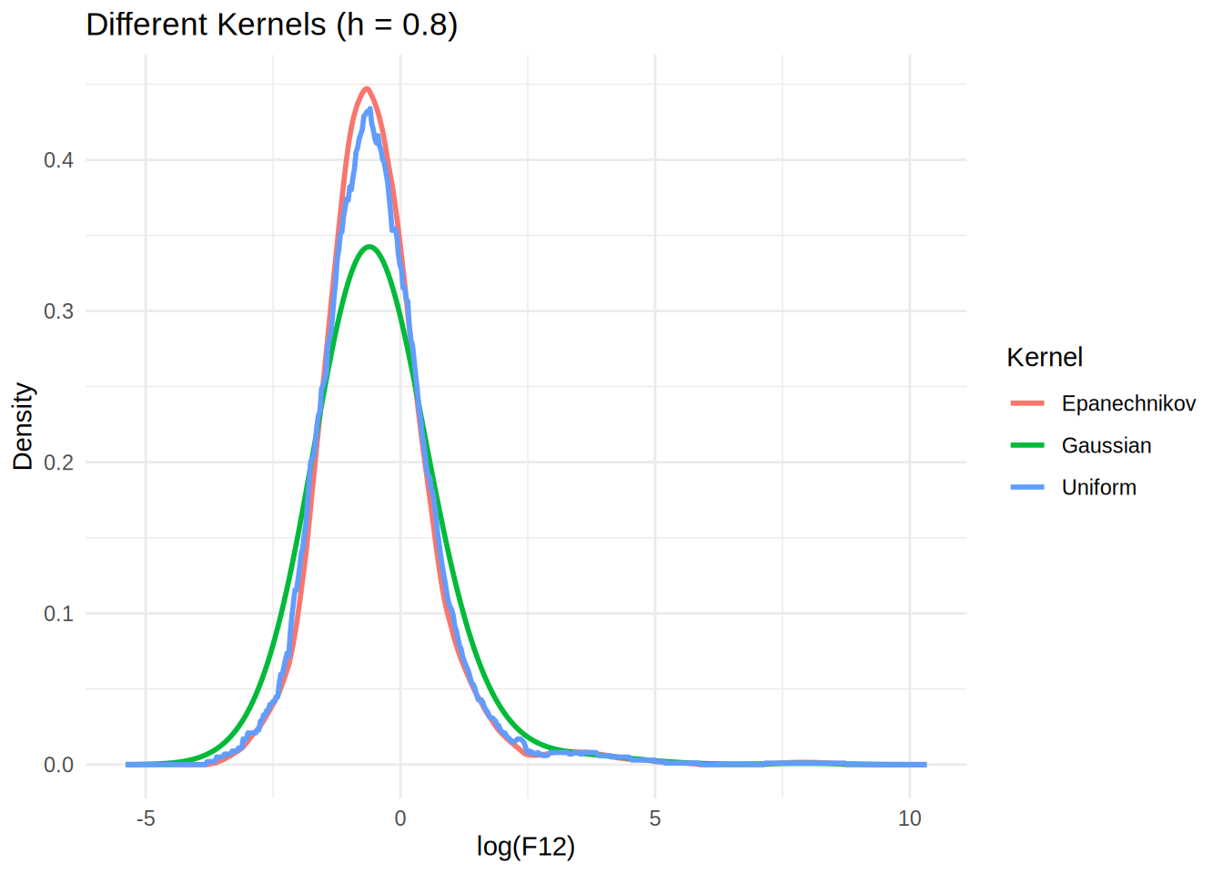 x = "log(F12)", y = "Density", color = "Kernel") +